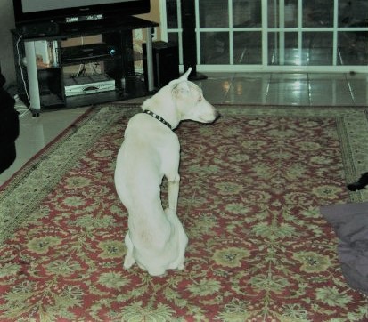 Dexter is “assumed” to be a Husky- Bull Terrier mix (but resembles more Lab) while Comet is part Greyhound and German Shepherd, which may be more accurate. Sometimes I think there is a master plan for dog and person; my spouse and I are curiously suited for this hodge-podge pack. Where else but in Southern California would California-born daughter of Kentucky-Alabama -Irish-Welsh extraction and son of Bronx Polish-Jew -Irish stock, make a home over twenty years for a couple generations of shelter dogs.