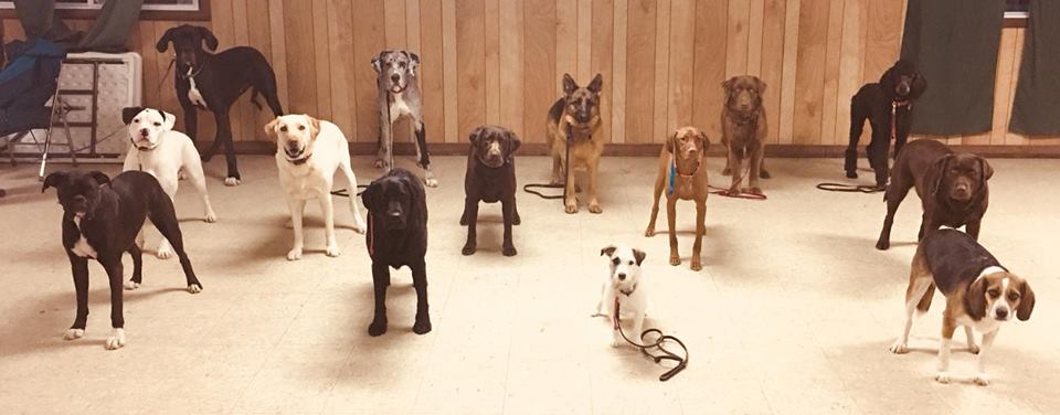 If you look at the photo above, you will see that all of the dogs are staying without anyone holding their leash…except one. See that big Great Dane in the back on the left-hand side? The one with the ears extended making him look like he’s about to take flight? Yeah, that’s Walter. See that leash that is NOT on the floor? That’s because I was at the other end of it, just in case. The most advanced student in the class…he is not. Sigh…