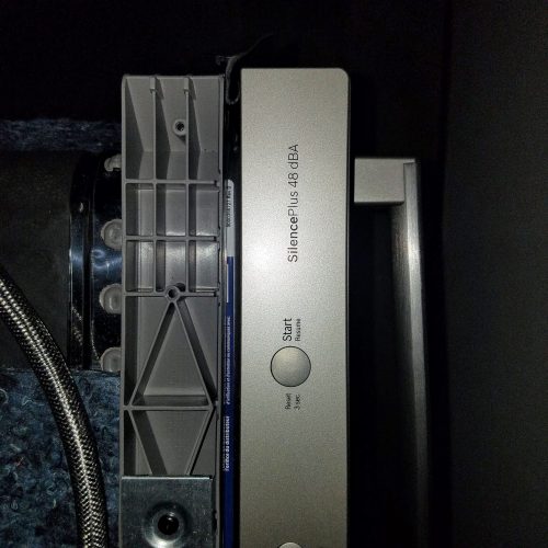 Did you put the Rinse solution in the slot in the dishwasher? No? The dishwasher will not turn on until it registers the Rinse Aid solution. (The dishwasher came with a packet of the stuff, but I did not understand the relevance from the operation manual.) A few hiccups and then everything is cycling like a charm. The dogs can come back into the kitchen now. Everything is calm and quiet. That dishwasher is a quiet machine to be sure, but the cussing in my head might have drowned out any noise it might have made while being installed. During my online study of these German marvels for the problems I was seeing, I did find that I, unintentionally, have gone more “Green”. This unit is an energy and water-saver by design, so am continuing to save the planet! While it takes longer to wash dishes through one cycle, I reduce my carbon footprint.