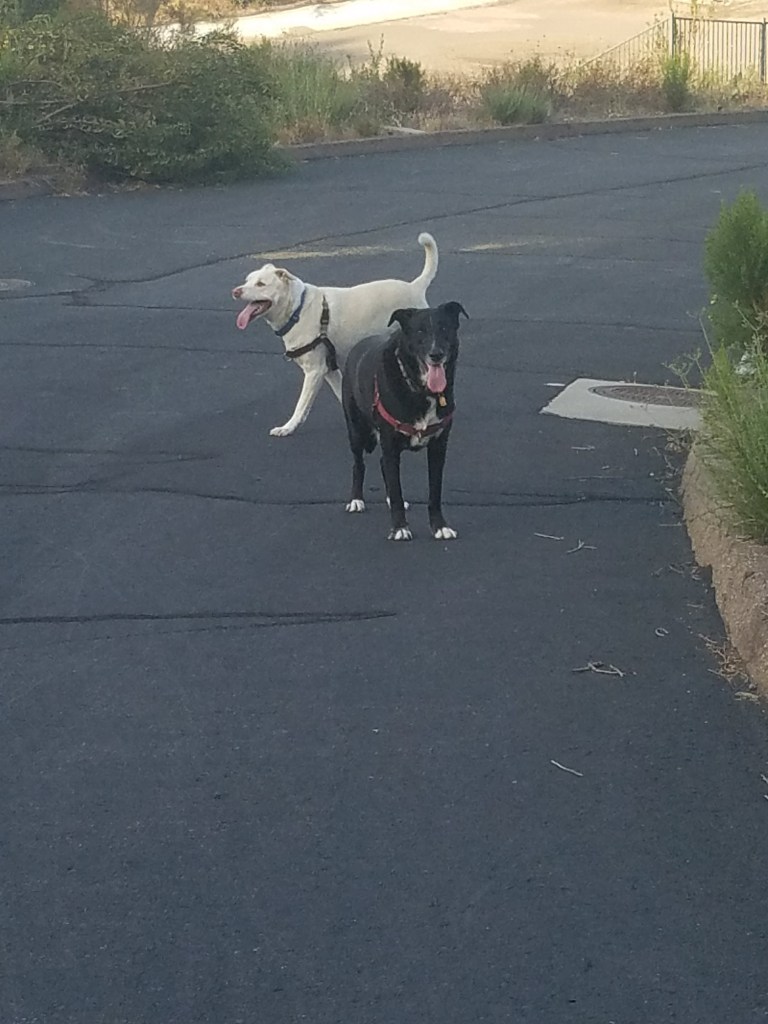 Comet, my occasionally attention-desperate dog, had a pretty good week making friends. While Dexter often seems to judge the quality of his walk by the number of dogs or people that “acknowledge” him, Comet seemed to be positively beaming that he was the focus of several people’s greetings. Including the two ladies walking a friendly female Pittie. A few days later, on Friday afternoon, as my wife, the dogs and I were setting out for a late-afternoon hill climb, our new tiled mailbox, a gift of my wife’s coworker, provided an opportunity to meet a family new to the neighborhood. While I said hello to the husband, and our wives discussed the mailbox, their little girls were enamored with Comet. Dexter was encouraged as well. However, that meeting just made Comet’s gait that much more springy going up the hill. And our “little piggy face” (the girls’ name for Dexter)? He was charging up the hill along with the Missus. As for yours truly? Let’s just say I was taking everything in more slowly.