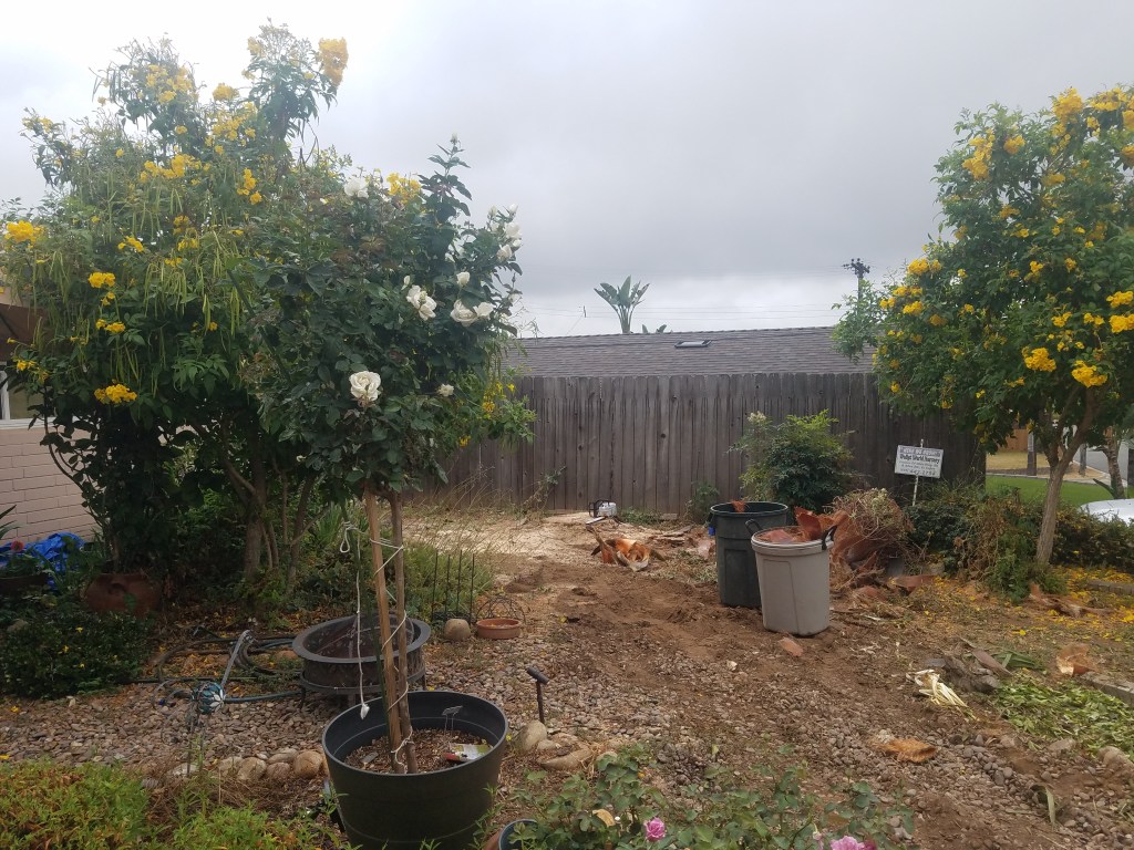 On Saturday I literally and figuratively began to clear “weeds” that have been choking creativity. For several years, I have accumulated flowering shrubs in our front yard, which for a small window of time are like a very colorful painting. But there is a difference between a garden that Matisse might envision and one Jackson Pollack – albeit on hallucinogens -produces. My wife has reasonably let me defer renovating our yard – while several neighbors have adapted to xeriscaping and artificial turf, I dreamed of a reasonably landscaped area on a budget for our “golden years”. Last weekend I knew what I was able to tackle with a wheelbarrow and an electrical reciprocating saw. By Sunday, the largest of the shrubs I removed myself was one which dominated the dead center of our yard. For a nearly thirty-foot Mexican fan palm, a nuisance “weed”, I used a tree company. By late afternoon Monday, that tree, and a decade-old Aleppo “living Christmas” pine tree was on its way to the compost dump. A backyard tree, doubled in height since last I had it pruned, was also trimmed. The occasion was also humbling. I got to apologize to a couple neighbors who I hadn’t informed beforehand that branches might fall into their yards.
