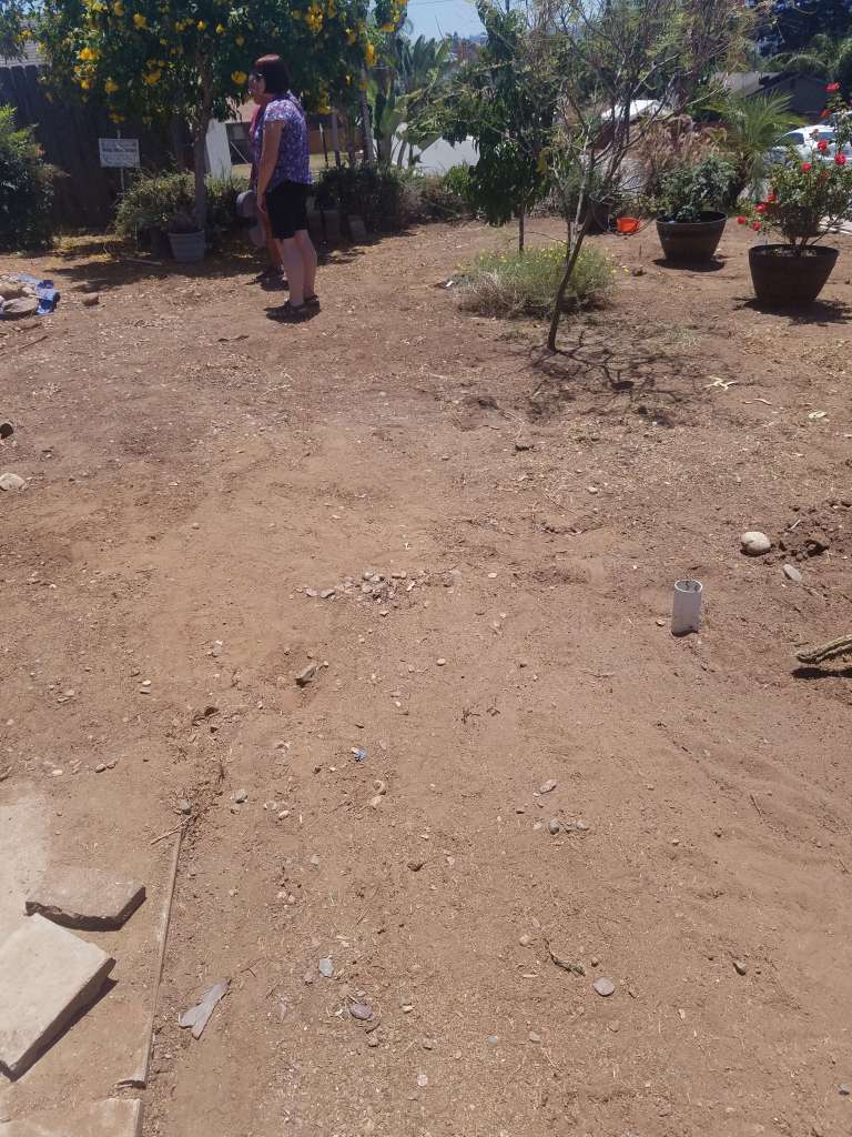 After several years of a gopher-Apocalypse in our neighborhood, neighbors on either side of us created appealing landscapes. Then in March, with the COVID quarantine, the only thing I managed was to “make a start” by removing the trees. ( At this point the nectarine and the Mexican Bird of Paradise, pictured below, will remain.) With rocks moved, trees cleared, gophers moved off, and landscaping design agreed upon, we now have no excuse to finish.