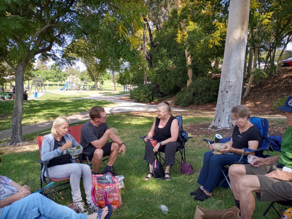 As for our little small group communities, some occasionally meet in parks. For some, the reality of their career never provided the opportunity of a “shutdown” nor “working from home”. For others, reopening businesses meant preserving their livelihoods. So we know how to invigorate our Christianity once again. Most, both Christian and non-Christian I know, still practice wearing masks and distancing out of mutual respect not just following government ordinance. Our longtime friends and us, the “Empty Nesters”, met together in a park today to have a little lunch and near face-to- face conversation. It was our first such outing in a very long time. It was good to see one another.