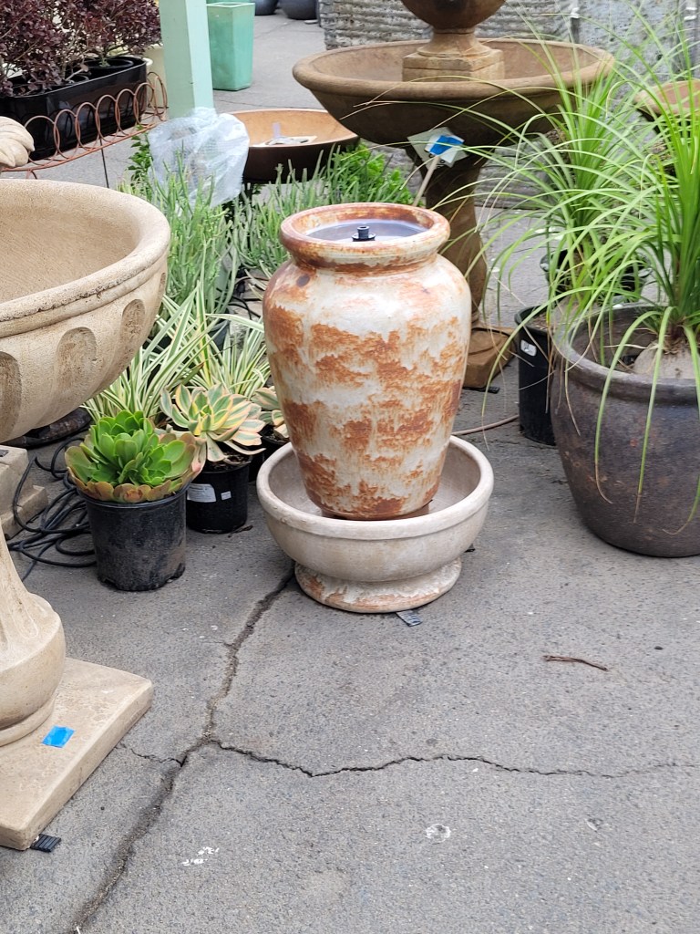 The Mad Potter is one of the little shops along the El Camino Real in northern San Diego County that I may have seen over several years when I worked in Carlsbad and took creative detours homeward during the agonizing traffic commutes. However, it is in this post-pandemic, semi-retirement that I am making a total overhaul of our home’s landscaping. I have been looking at little mom n’ pop shops and nurseries to find specific low-water need and heat-tolerant California plants, pottery, bird baths and today, a fountain that will tie the hummingbird, butterfly and bee garden and (human) guest-friendly design.