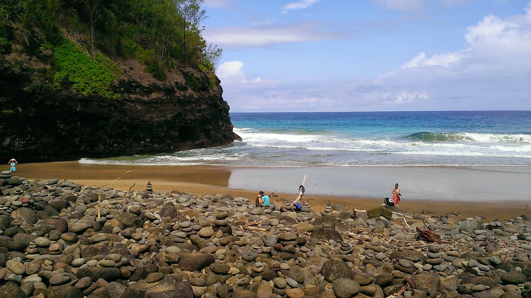 The guide app, All Trails, rates the hike as “difficult”. This was, for my wife and myself, our third attempt in 20 years to reach a spectacular waterfall on the Kalaulau Trail. However, the guide I believe is referring to the last 9 miles of the 11- mile Na Pali coast trail which requires skill, endurance and an overnight camping pass. The hike to the beach and then, to the falls a mile inland, is a doable 6 miles round trip – in good weather.